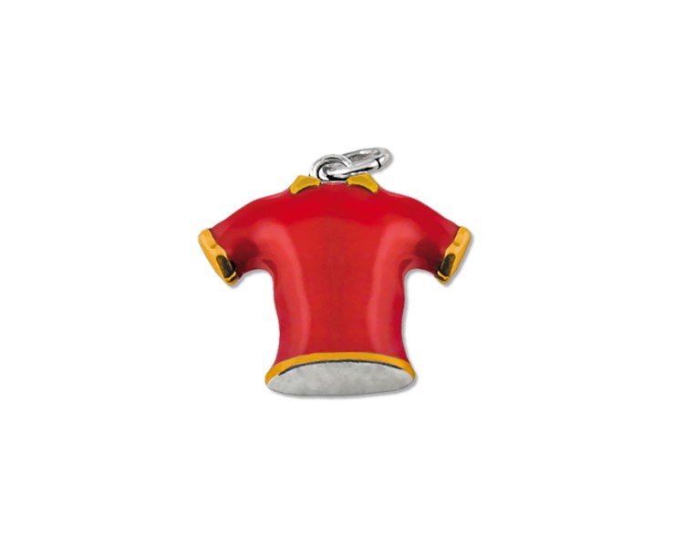 Un simbolo di passione e appartenenza per tutti i tifosi della Roma! Questo raffinato ciondolo a forma di maglia giallorossa, realizzato in bagno argento e smaltato a mano, è il regalo perfetto per ogni amante del calcio.