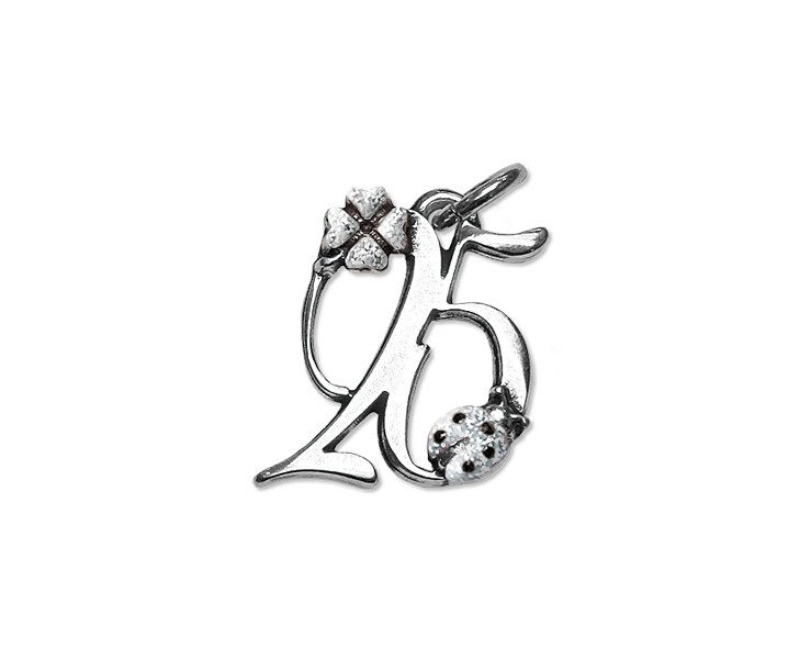 Celebra i venticinque anni con questo incantevole ciondolo. Il design rappresenta il numero 25, impreziosito da un delicato quadrifoglio e una simpatica coccinella che si posano su di esso. Questi elementi, oltre a donare un aspetto originale e giocoso, sono tradizionalmente associati alla fortuna e alla protezione. Questo ciondolo è perfetto per chi desidera portare sempre con sé un simbolo di positività e rinascita.
