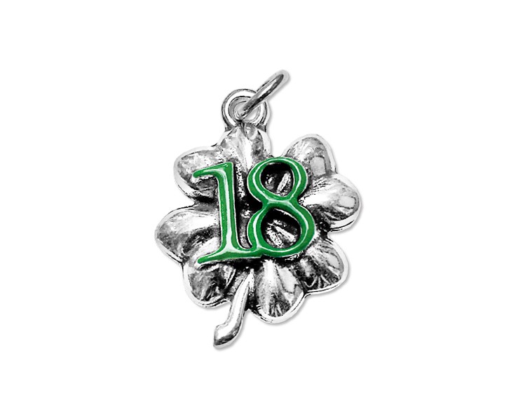 - Design: Numero 18 smaltato verde su un quadrifoglio, simbolo di fortuna