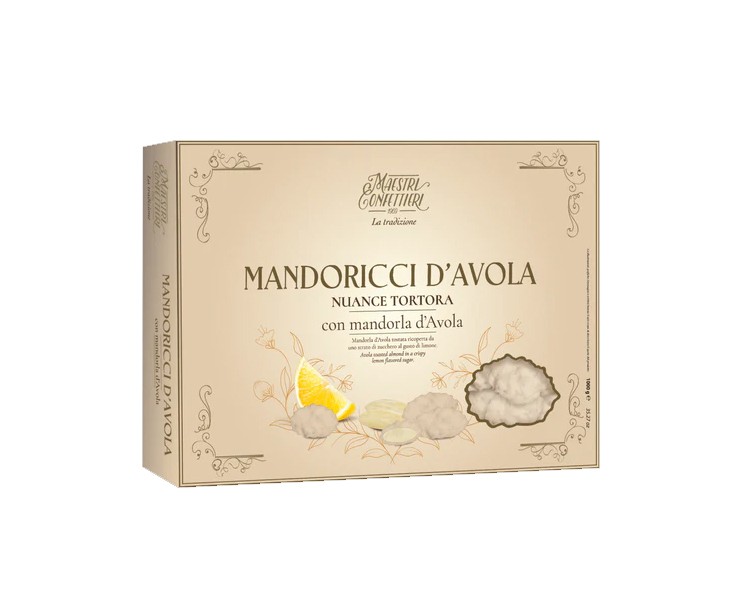 - Mandorle d'Avola tostate avvolte in un sottilissimo strato di zucchero aromatizzato al limone.