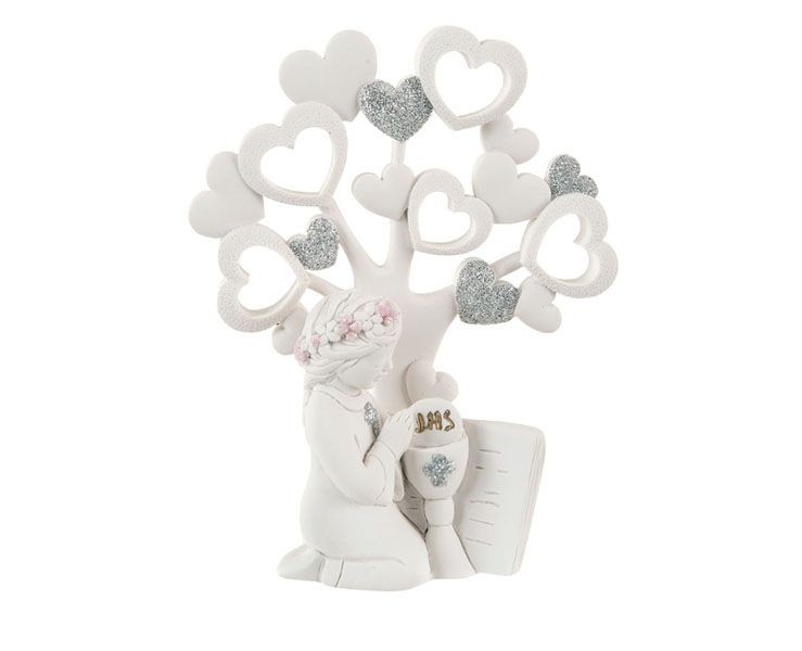 BOMBONIERA MATRIMONIO HARMONY PIATTINO CUORE PORCELLANA BIANCA CON ALBERO DELLA VITA PLATINO