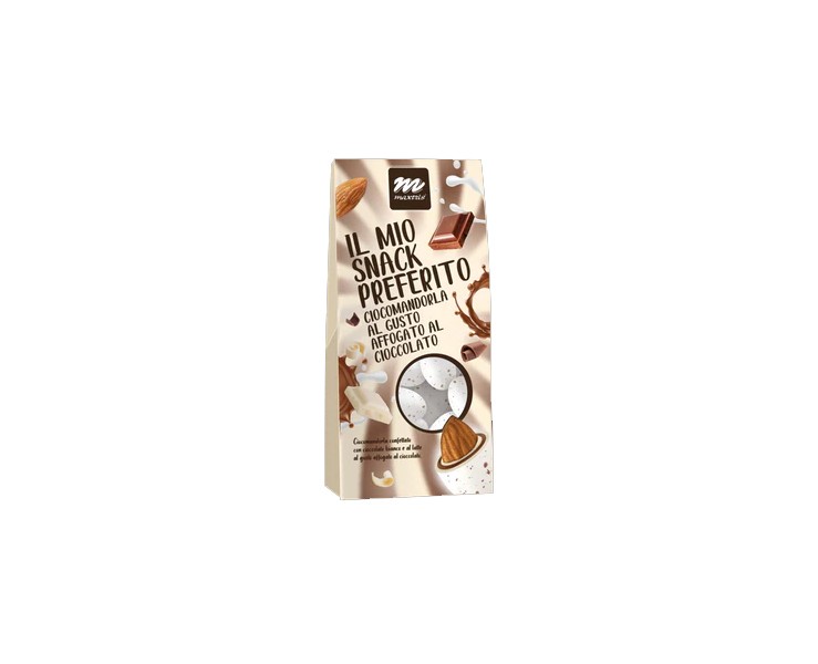 Un piccolo momento di piacere dal gusto irresistibile: Il mio Snack Preferito – Affogato al Cioccolato è la coccola perfetta per ogni pausa golosa. Una mandorla tostata, croccante e avvolgente, è immersa in un morbido strato di cioccolato bianco e al latte. Il sottile rivestimento di zucchero completa il confetto con equilibrio e dolcezza.