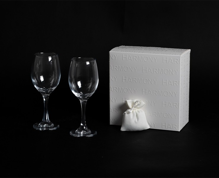 Perché Sceglierlo come Bomboniera Il calice da vino è un simbolo universale di gioia e festeggiamento. Scegliere questa coppia firmata Harmony significa donare un oggetto utile, duraturo e di grande raffinatezza. È la bomboniera perfetta per chi desidera che il ricordo del proprio evento rimanga vivo nei brindisi futuri dei propri ospiti, sostenuto dalla qualità e dal prestigio di un packaging da boutique.
