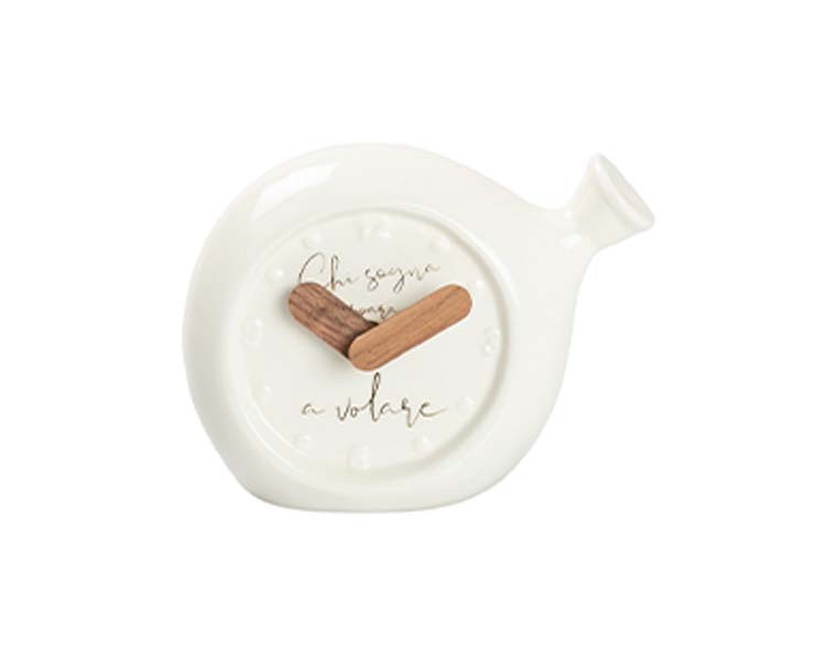 L'Orologio Palloncino Harmony è molto più di un semplice cronometro; è un invito a inseguire i propri desideri. La forma tondeggiante e pulita, che richiama un palloncino pronto a spiccare il volo, è realizzata in porcellana bianca di altissima qualità dalla finitura lucida. Il quadrante minimale presenta i numeri a rilievo tono su tono, mettendo in risalto la dedica centrale e le calde venature delle lancette in vero legno.