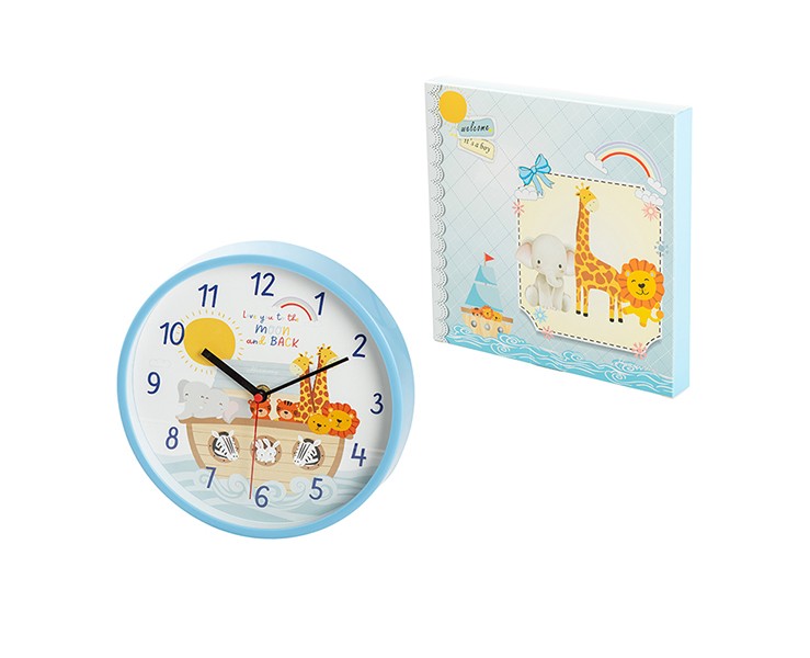 Questa collezione Arca di Noè trasforma lo scorrere del tempo in un gioco colorato e pieno di vita. L'orologio da parete, con la sua forma circolare e le illustrazioni vibranti, è pensato per portare un tocco di allegria e serenità nelle stanze dei più piccoli, celebrando ogni istante con la compagnia di simpatici animali pronti per una grande avventura.