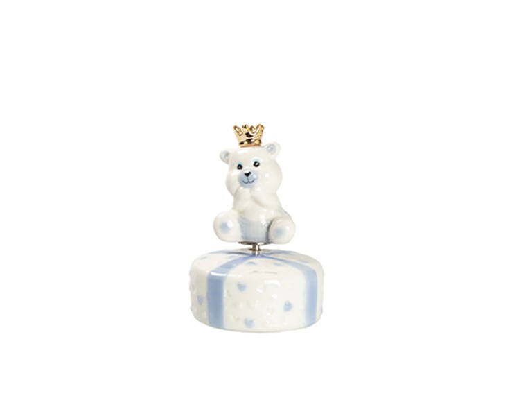 Bomboniera Harmony CARILLON ORSETTO CELESTE CON CORONA PORCELLANA CON BOX E SACCHETTO