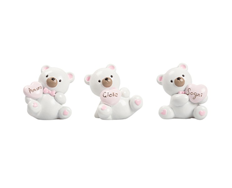 Bomboniera Harmony ORSETTO BABY GIRL 3D AMORE - GIOIA - SOGNI 3 ASSORTITI CON FAZZOLETTO