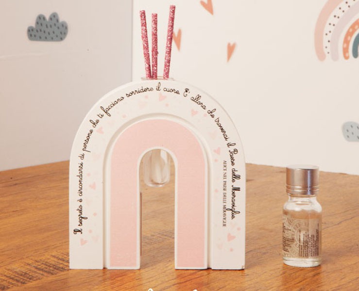 Bomboniera Claraluna Nascita Battesimo compleanno profumatore con kit essenza rosa arcobaleno con frase piccolo
