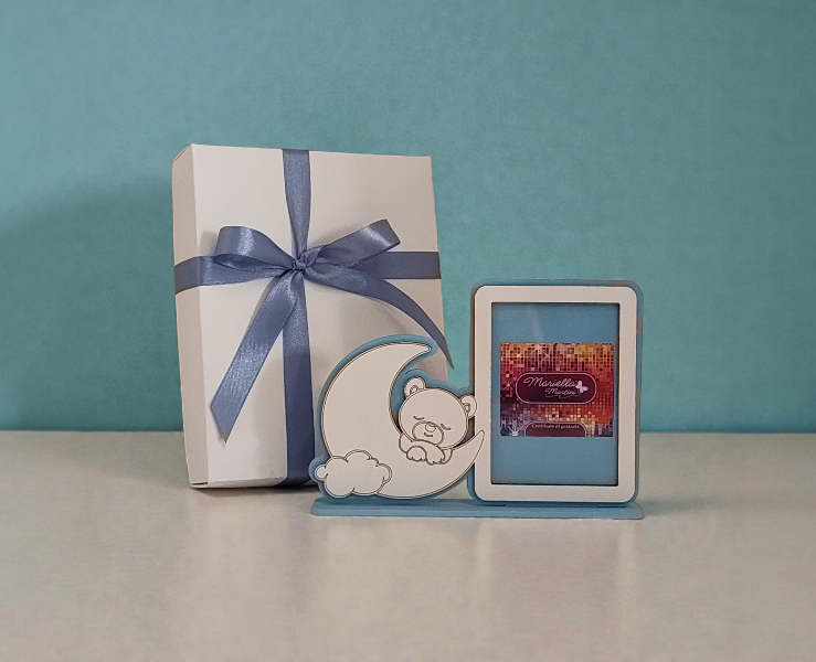 Disponibile in Varianti Colore: La cornice è declinabile in tonalità delicate (come l'azzurro polvere o il rosa), permettendo di adattarsi perfettamente al sesso del nascituro o allo stile della cameretta.
