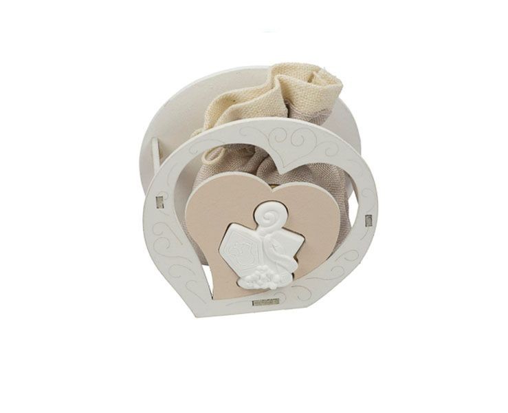 Sacchetto scatolina prima comunione harmony legno albero della vita tortora e cuore con angelo