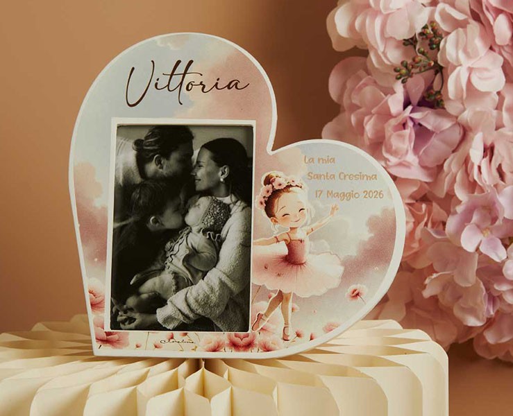 Bomboniera Claraluna Portafoto Portafoto Cuore Ballerina Personalizzabile