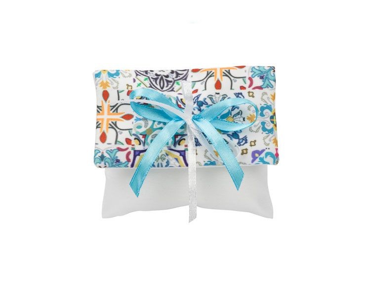 Questo accessorio della collezione Baratti si ispira alle celebri ceramiche di Vietri sul Mare, portando in tavola un pezzo di artigianato mediterraneo. La bustina è pensata per chi desidera una bomboniera o un segnaposto dal carattere deciso, capace di evocare la bellezza dei borghi marittimi attraverso geometrie ed arabeschi multicolore.