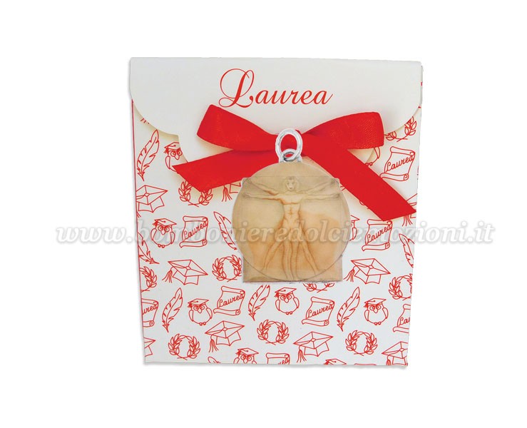 Bomboniera Laurea vitruviano uomo - Ciondolo in bagno argento Smaltato con Scatola Rossa