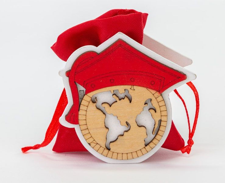 Sacchetto Legno Mappamondo Laurea