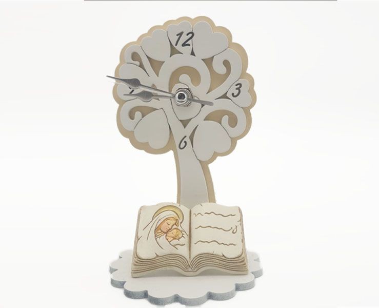 Bomboniera Comunione Cresima SVEGLIA albero della vita con libro madonna con bambino