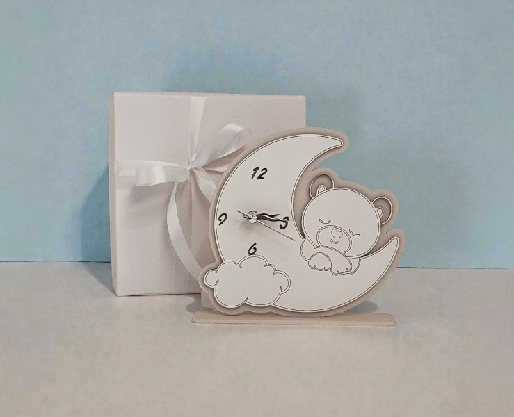 Bomboniera Nascita Battesimo Orologio da Tavolo Luna e Orsetto