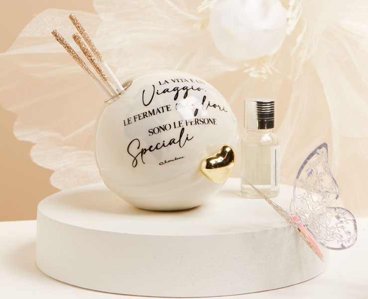 - Utilizzo: Diffusore per ambienti ideale come bomboniera per matrimoni o celebrazioni importanti