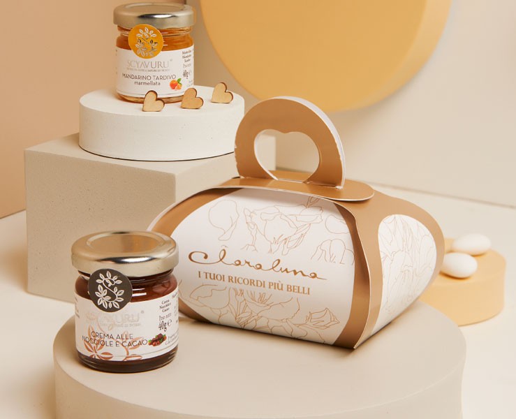 Bomboniera Claraluna con Marmellata di Albicocca e Crema alla Nocciola
