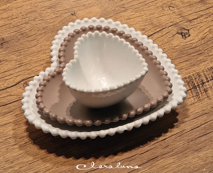 Bomboniera Matrimonio Claraluna tris piattini cuore bianco piccolo marrone medio bianco grande