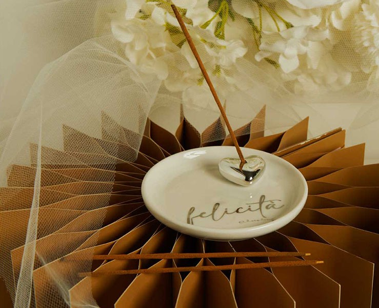 Bomboniera Matrimonio Claraluna 2026 Piattino Porta Incenso Felicità con 3 Bastoncini