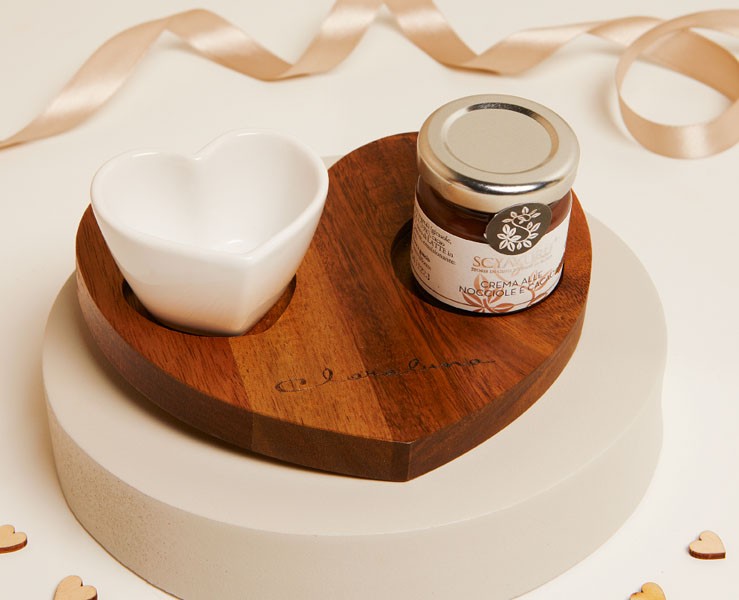 Bomboniera Claraluna Vassoio Cuore con Ciotolina e Crema di Nocciola da 40gr