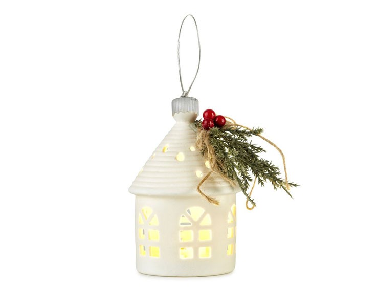 - Design elegante: Finestre intagliate, dettagli in abete e bacche rosse.