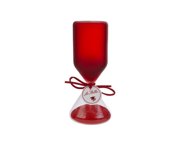 Segna l'inizio di un nuovo capitolo con questa esclusiva clessidra per laurea, un oggetto che fonde simbologia classica e stile contemporaneo. Alta 15 cm, la clessidra si distingue per il raffinato contrasto materico: la parte superiore in vetro rosso satinato opaco dona profondità e carattere, mentre la base trasparente lascia scorrere la sabbia rossa brillante, catturando lo sguardo.