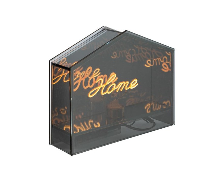 La lampada LED Vetro Fumé Home è pensata per chi desidera un oggetto iconico capace di comunicare calore e appartenenza. La struttura in vetro dalle tonalità scure e trasparenti ("fumé") scherma dolcemente la luce dei LED interni, creando un'illuminazione soffusa che mette in risalto l'incisione frontale.
