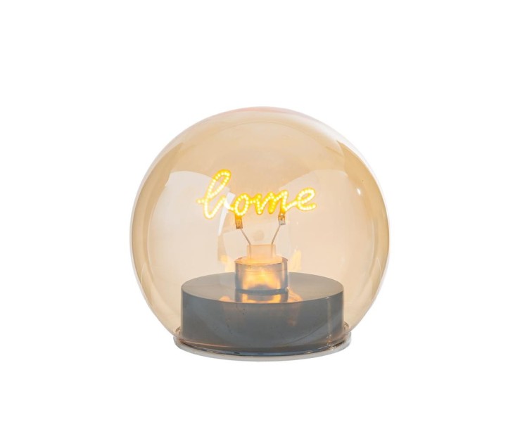 Un piccolo cuore di luce per la casa. Questa mini lampada sferica in vetro fumé, dalle calde sfumature ambrate, racchiude l'incisione luminosa "Home". Grazie al design moderno e alle dimensioni contenute, è la bomboniera ideale per lasciare un ricordo raffinato e accogliente, pronta da donare grazie alla shopper coordinata inclusa.