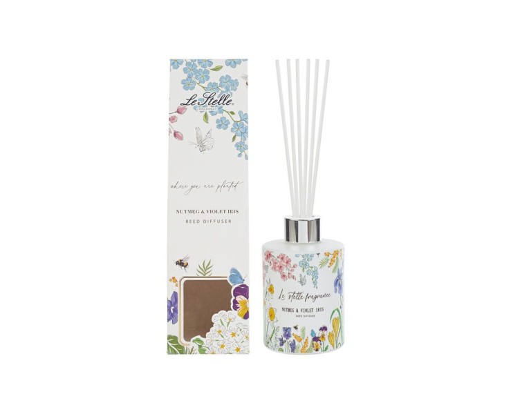 La fragranza Nutmeg & Violet Iris (Noce Moscata e Iris Violetto) è studiata per offrire una diffusione costante e prolungata, sprigionando note speziate addolcite dalla delicatezza dei fiori primaverili. Grazie alla capacità di 165 ml, il profumatore assicura una lunga durata, rendendolo ideale per valorizzare il soggiorno, la camera da letto o il bagno con un'atmosfera piacevole e accogliente.
