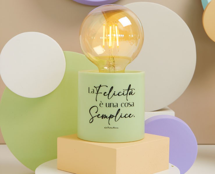 Questa elegante lampada LED verde, decorata con la frase "La felicità è una cosa semplice", è un elemento di design raffinato e moderno. Con le sue dimensioni di 8,5 x 17 cm, illumina delicatamente l'ambiente, creando un'atmosfera calda e accogliente. Grazie al suo stile minimalista, si adatta perfettamente a qualsiasi tipo di arredamento, offrendo un tocco di classe e originalità.