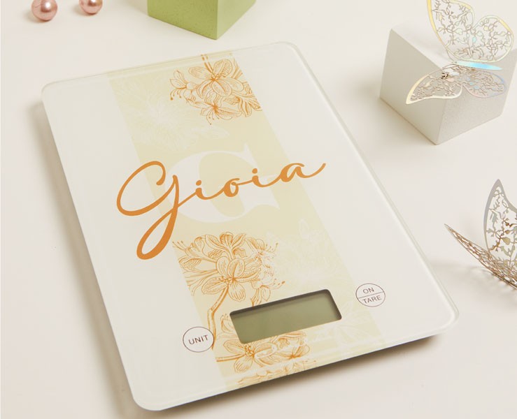 Questa bilancia digitale è un’idea elegante e utile per il tuo matrimonio. Decorata con il tema "Gioia", è perfetta per aggiungere un tocco di raffinatezza e funzionalità alla tua cucina o per essere donata come bomboniera.