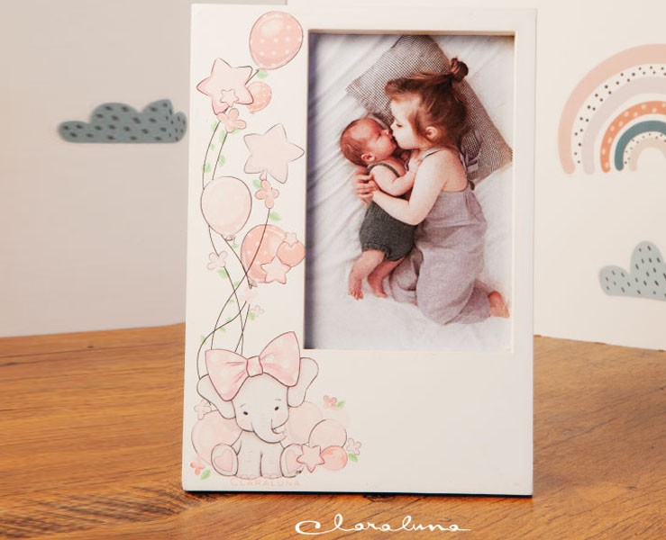 Bomboniera Claraluna Nascita Battesimo compleanno portafoto elefante rosa