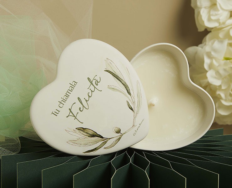 Bomboniera Matrimonio Claraluna 2026 Candela Profumata Claraluna Scatola Cuore Decoro Ulivo