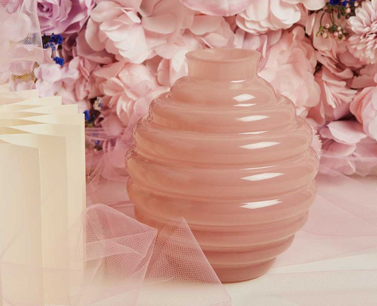 Il Vaso Tondo Piccolo Rosa è un elemento d'arredo che cattura lo sguardo con il suo design moderno e la sua delicata tonalità. Realizzato in vetro soffiato rosa satinato, presenta un'originale forma tondeggiante arricchita da una lavorazione a fasce orizzontali in rilievo che conferisce texture e profondità.