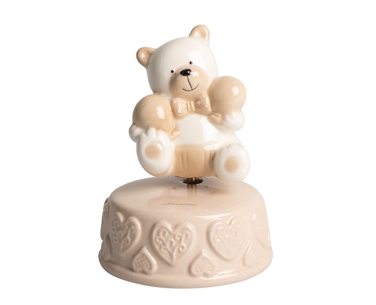 Bomboniera Harmony Battesimo Carillon Orsetto in Porcellana Color Tortora